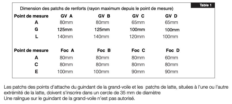 Ce qui signifie que les voiles Joysway fournies par le constructeur licencié ne rentre pas dans le cadre des dimensions du tableau 2 , ne sont pas mesurées et sont automatiquement conforme à la Classe DF95.