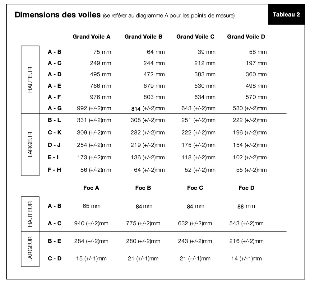 Dimensions voiles ( autres que celle fournie par le constructeur licencié)